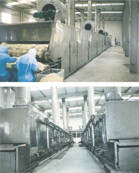 概述: 將所要處理的物料通過適當?shù)募恿蠙C構(gòu),如星型布料器、擺動帶、粉碎機或造粒機,分布在輸送帶上,輸送帶通過一個或幾個加熱單元組成的通道,每個加熱單元均配有空氣加熱和循環(huán)系統(tǒng),每一個通道有一個或幾個排濕系統(tǒng),在輸送帶通過時,熱空氣從上往下或從下柱上通過輸送帶上的物料,從而使物料能均勻干燥。